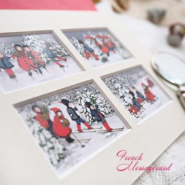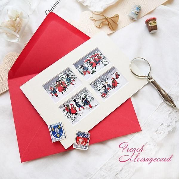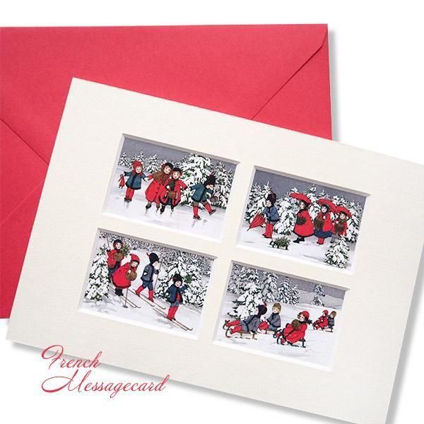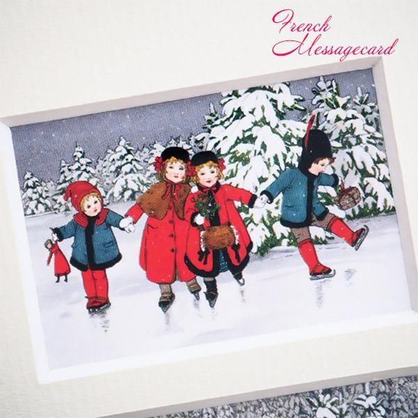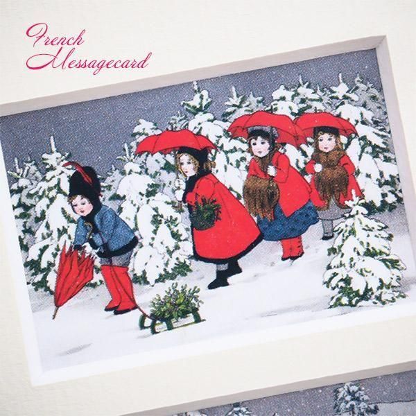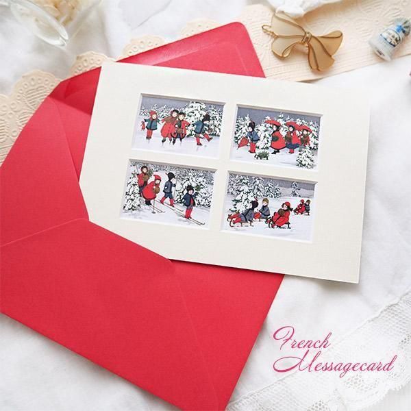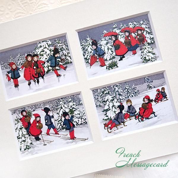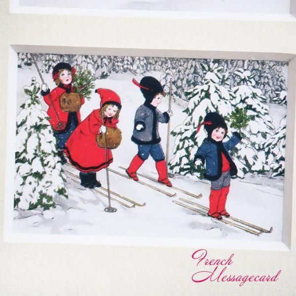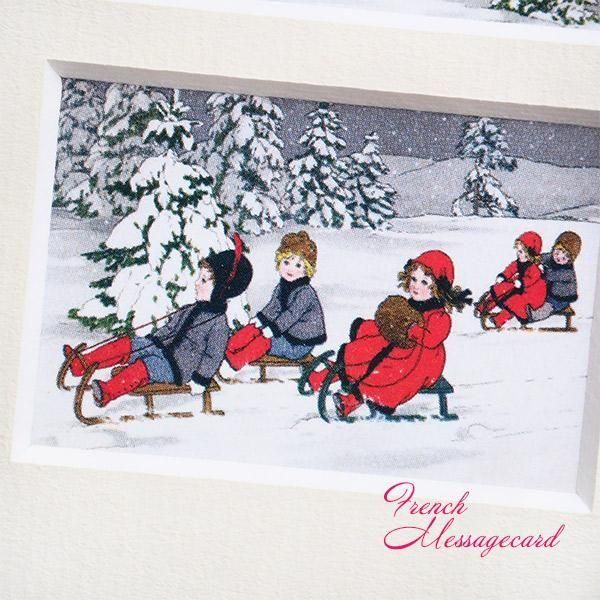絵柄は、冬の森での子どもたちの楽しげな姿を描いたやさしいシーン