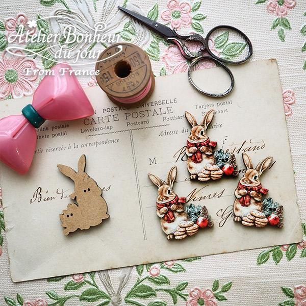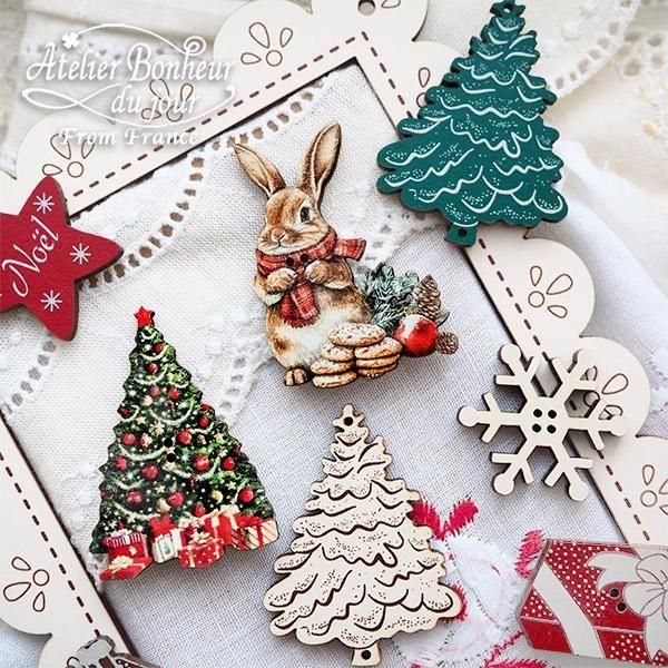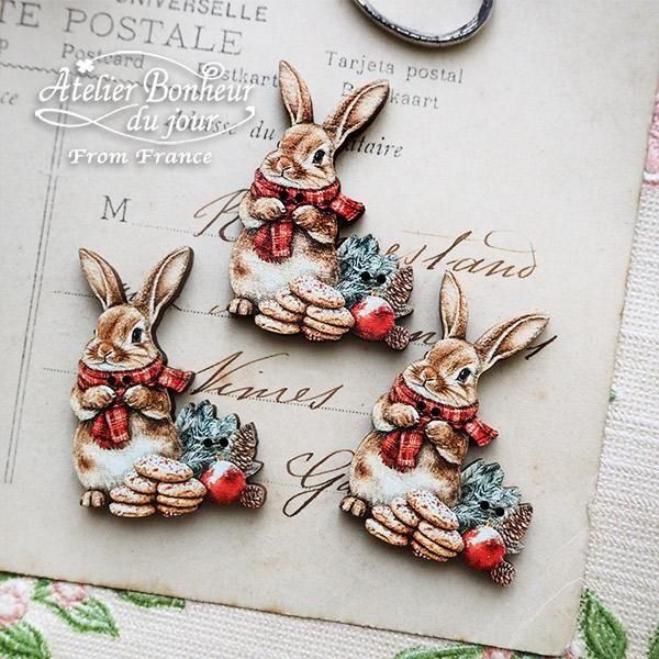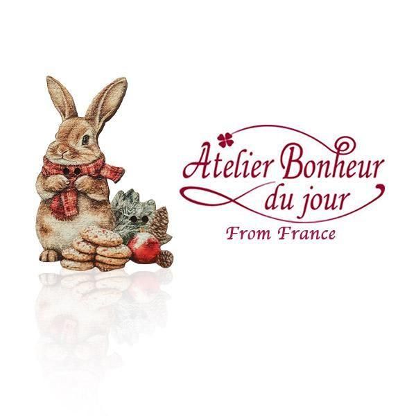 フランス輸入ボタン アトリエ・ボヌール・ドゥ・ジュール【うさぎ・ひいらぎ・クリスマス・クッキー】