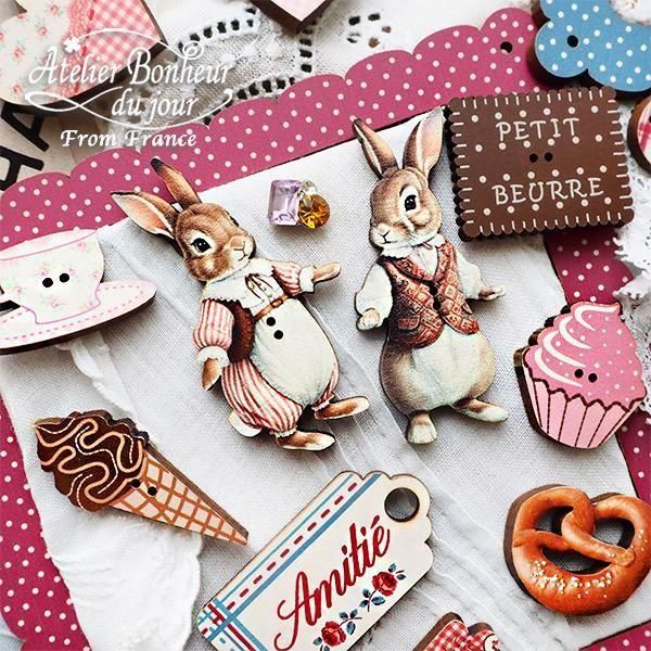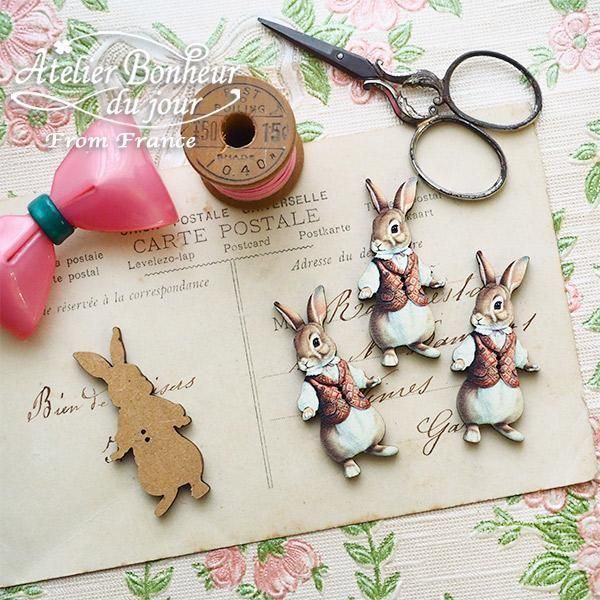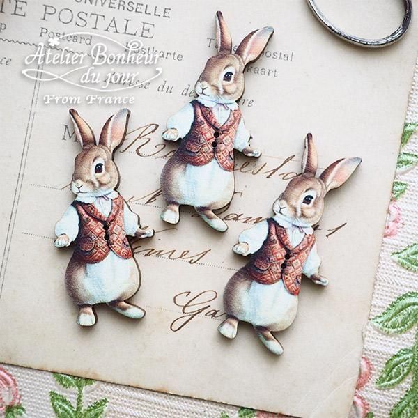 フランス輸入ボタン アトリエ・ボヌール・ドゥ・ジュール【うさぎ・ムッシュ・カントリー】