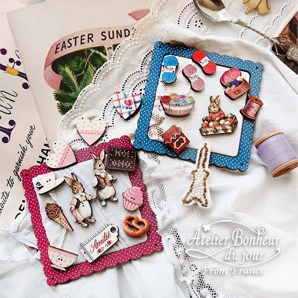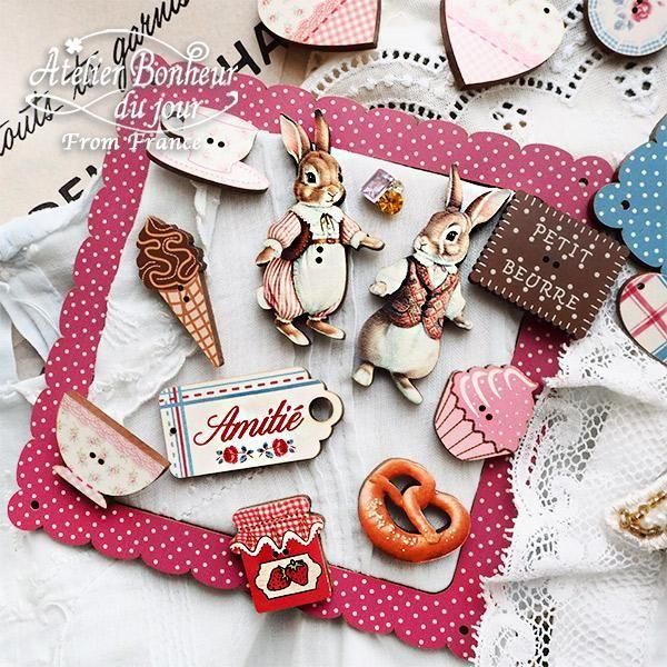 7. 【お得なボタンセット】フランス輸入ボタン アトリエ・ボヌール・ドゥ・ジュール(赤ずきん(B-type) バスケット いちごジャム みかん パイ フランスパン)