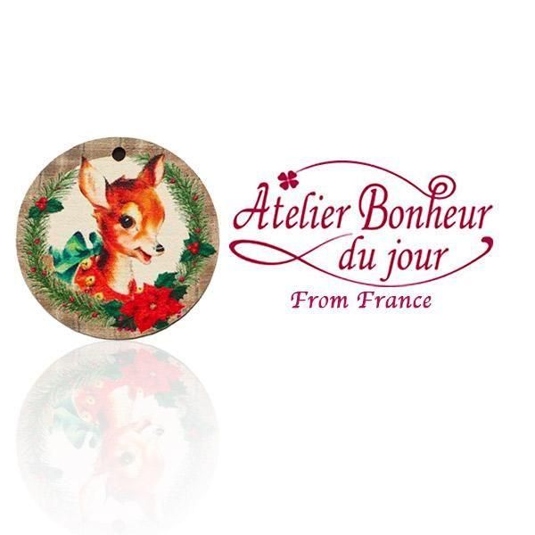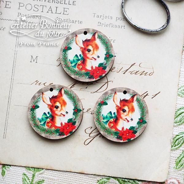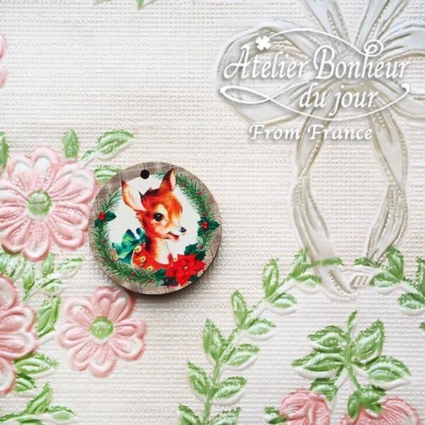 こちらは、クリスマスリースでデコレーションされた子鹿のボタン