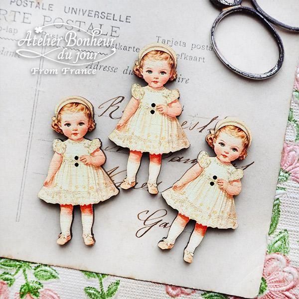 フランス輸入ボタン アトリエ・ボヌール・ドゥ・ジュール【幼子・イエローフリルワンピース】