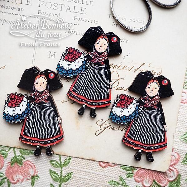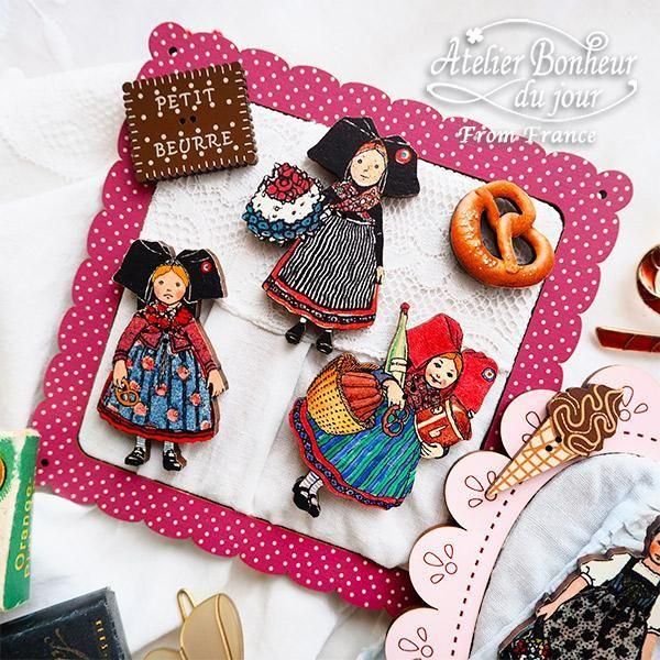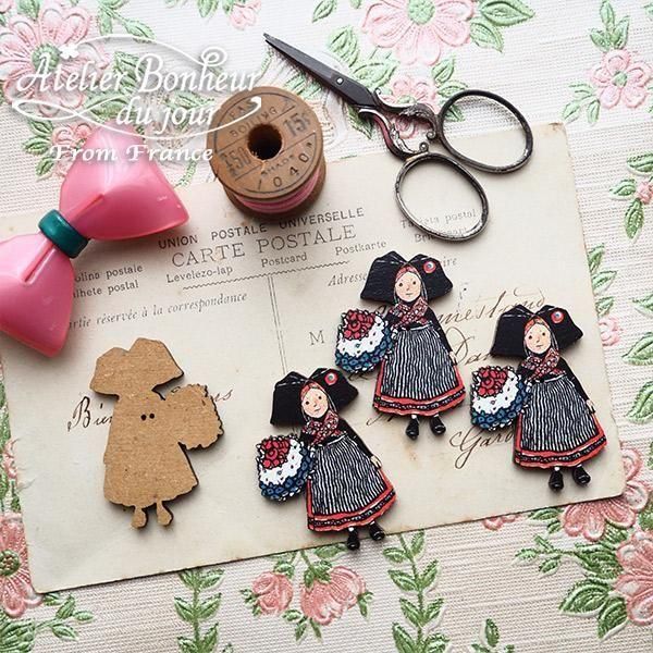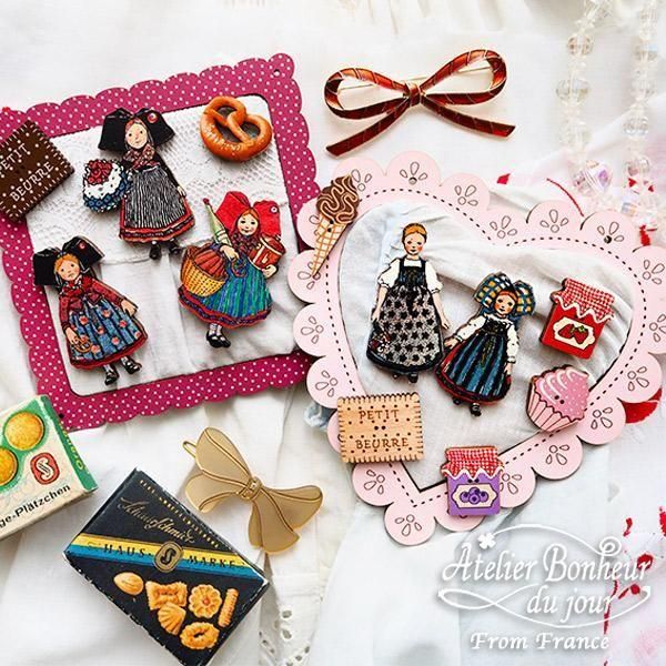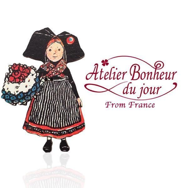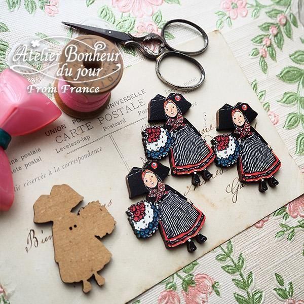 フランス輸入ボタン アトリエ・ボヌール・ドゥ・ジュール【アルザスの女の子・バラの花束・Hansi】