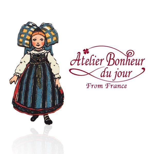フランス輸入ボタン アトリエ・ボヌール・ドゥ・ジュール【アルザスの女の子・チェックリボン・Hansi・民族衣装】
