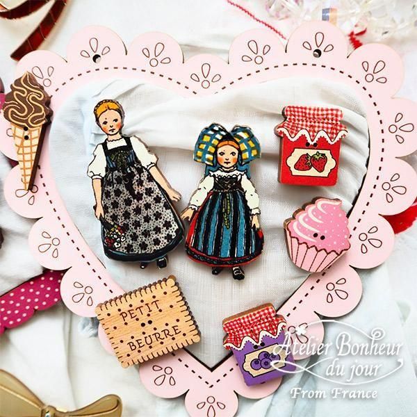 こちらは、アルザス地方の民族衣装をまとった女の子をモチーフにしたボタン